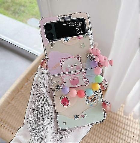 Cute Planet Bear Phone Case Compatible Samsung Galaxy Z Flip 4 With Strap Bracelet Chain For Girl Women
