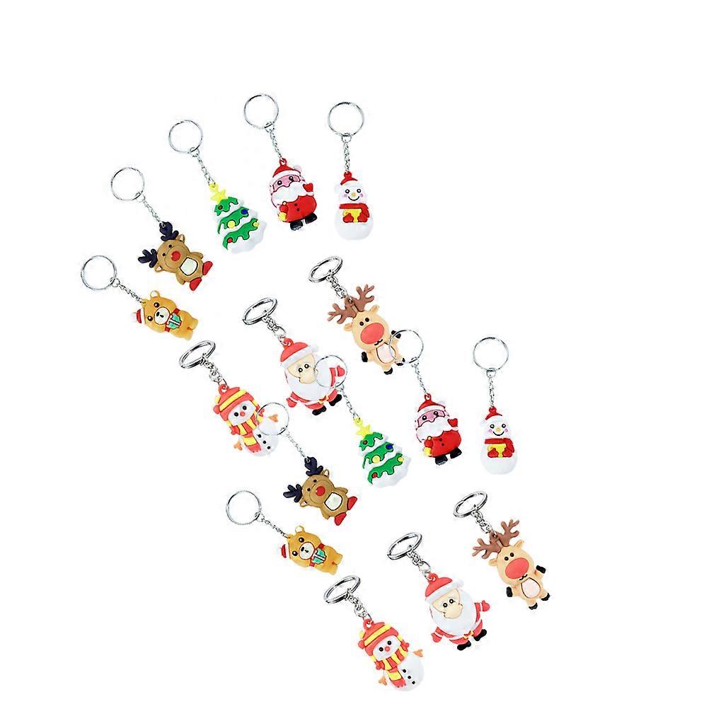 Cute 16Pcs Bear Shape Silicone Keychain Pendant For Christmas Tree Hanging Decoration Assorted Color