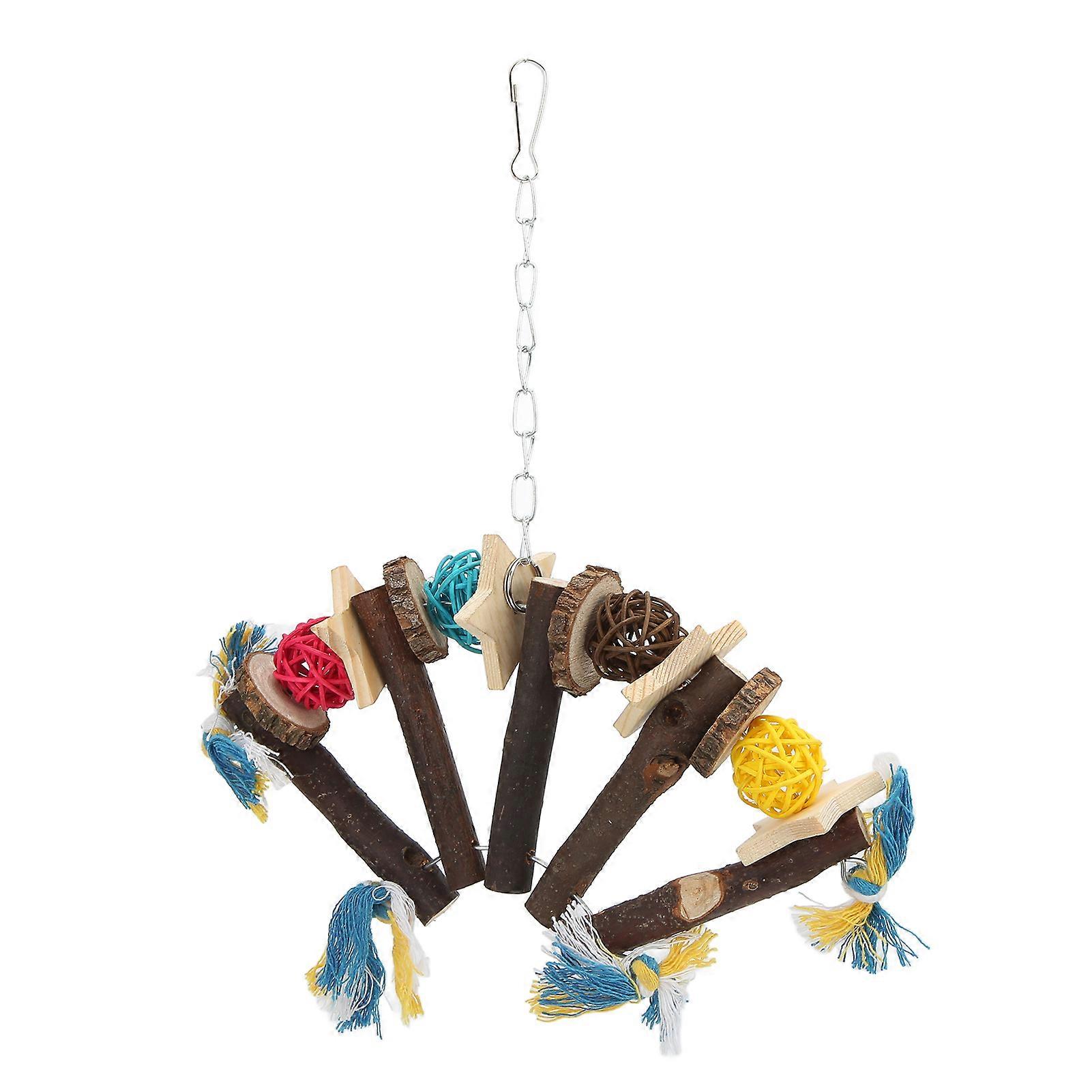Bird Chewing Toy Colorful Fan Shaped Parrot Cage Bite Toy with Fixed Hook for Cockatiel Conure African Grey