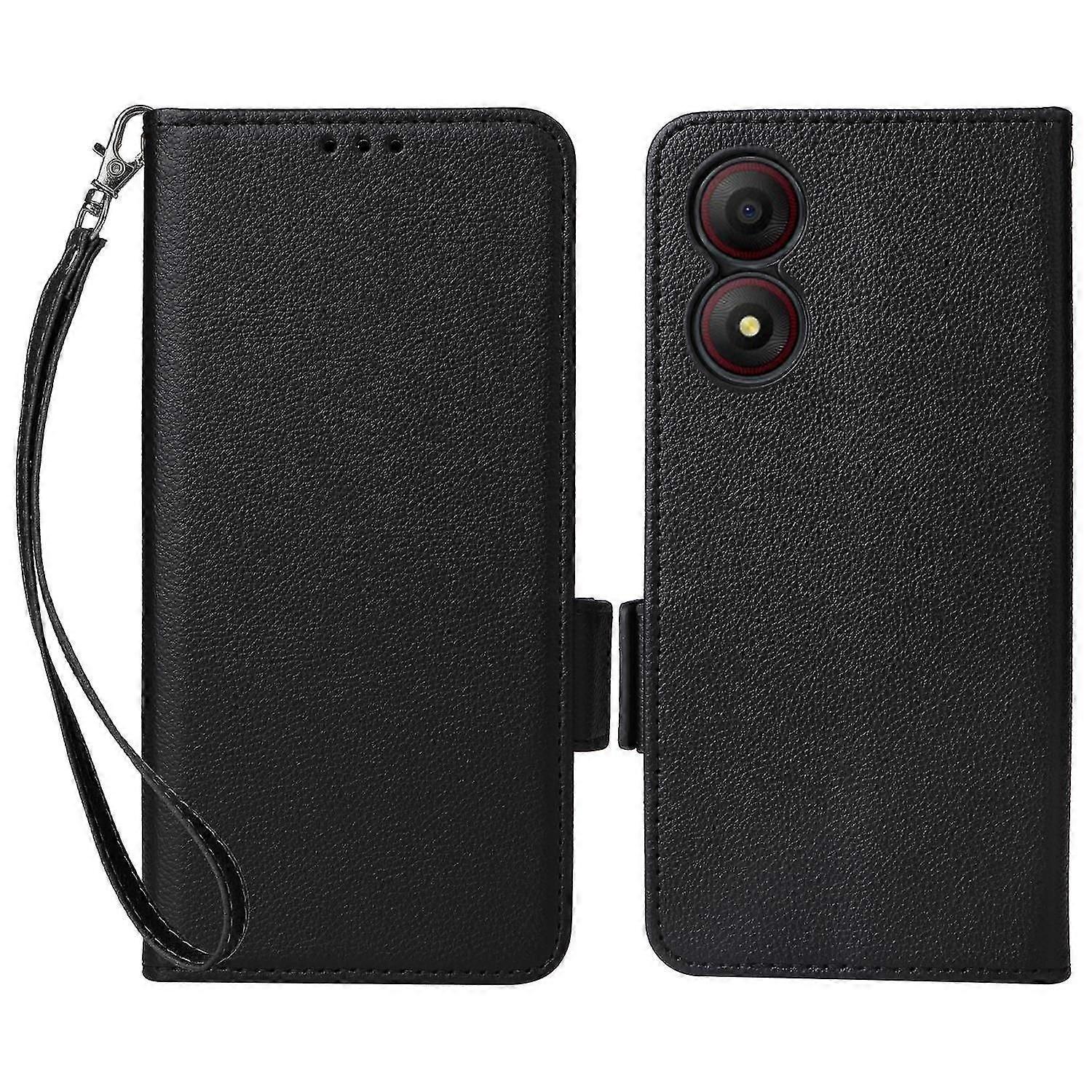 For ZTE Blade A34 Phone Case Leather Litchi Texture Cover with Magnetic Closure - Black