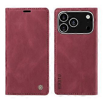 For iPhone 17 Pro Leather Cover YIKATU YK-004 Skin-Touch Wallet Phone Cases Wine Red