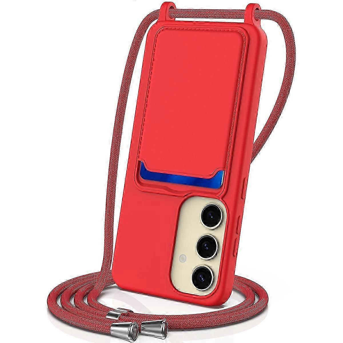 For Samsung Galaxy S24 Case Liquid Silicone Phone Cover with Lanyard,Card Holder