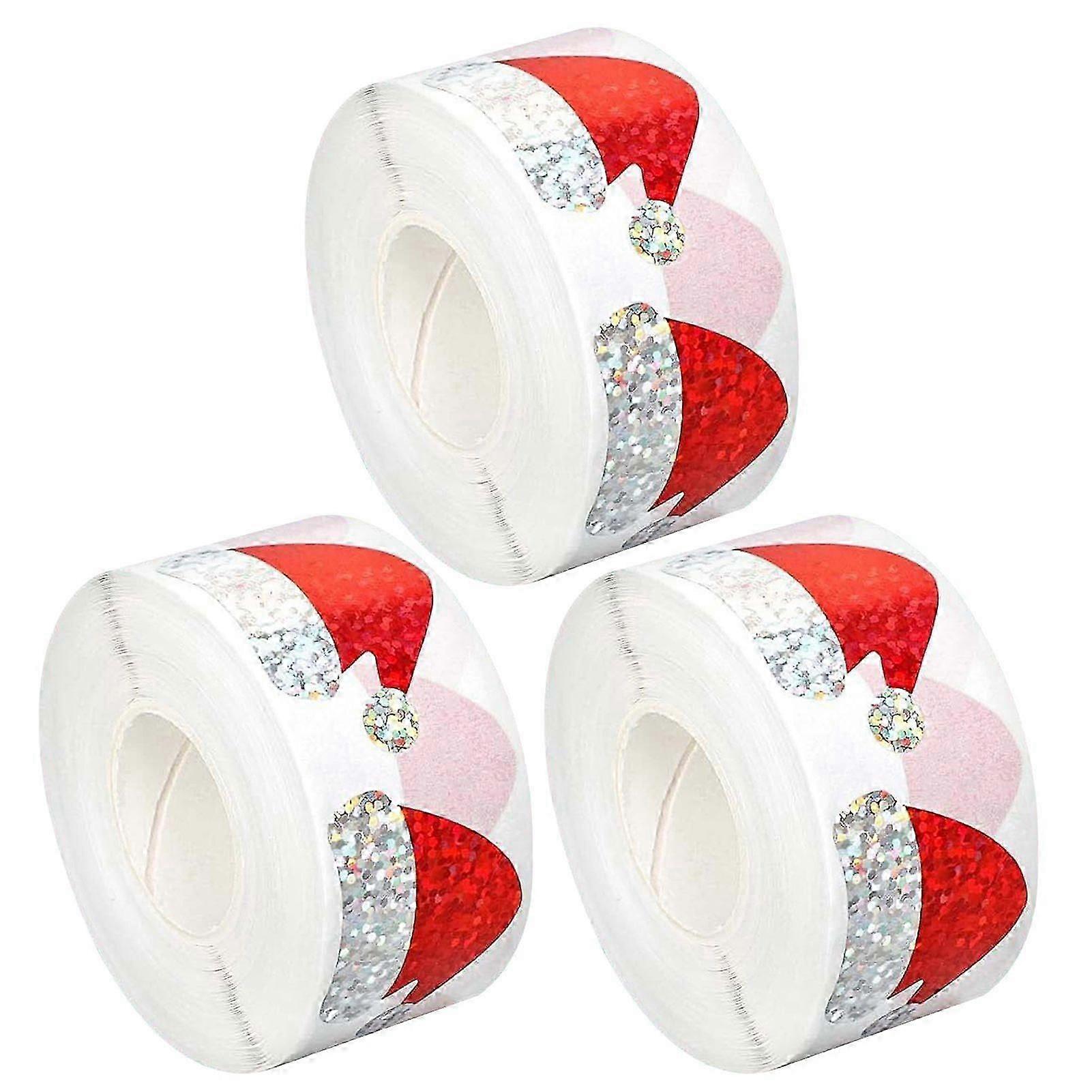 Christmas Hat Stickers Roll, Red Santa Hat Seal Stickers, Xmas Waterproof Self-Adhesive Decals for Envelope Journal Party Favors, 500Pcs/Roll
