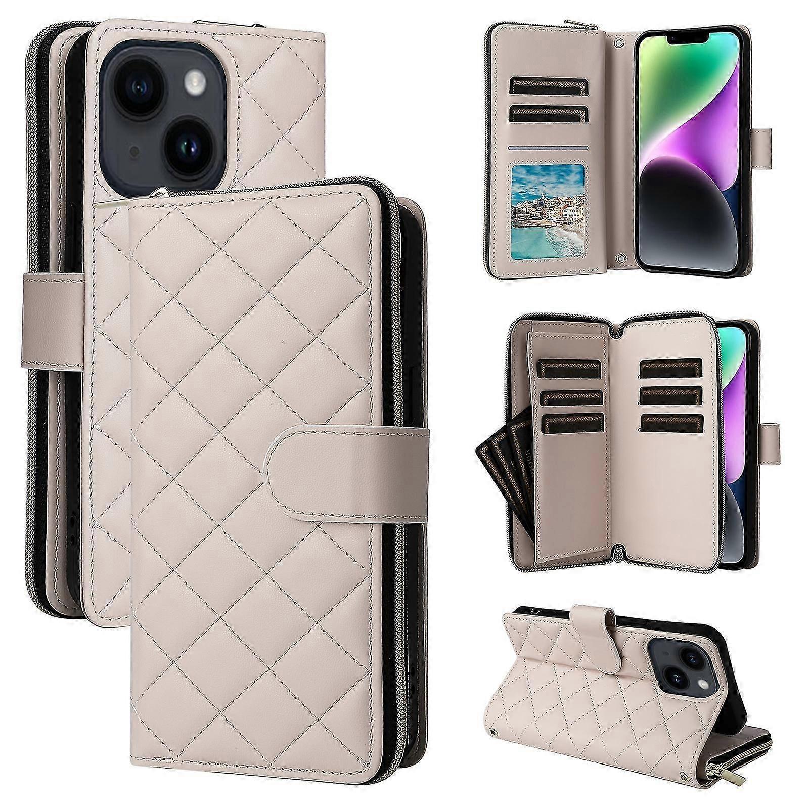 For iPhone 14 / 13 Crossbody Rhombic Zipper Tower Buckle Leather Phone Case with Lanyard