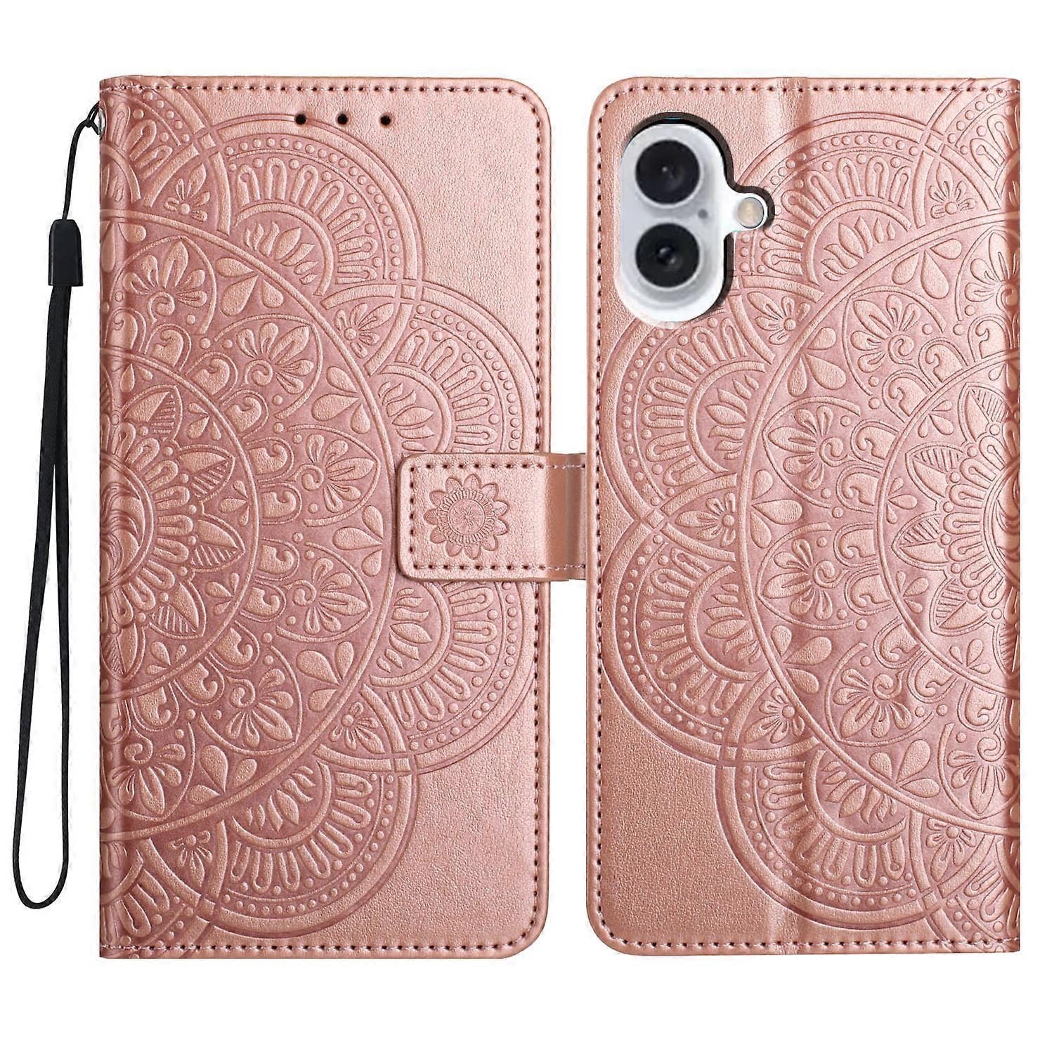 For iPhone 16 Case Mandala Flower PU Leather Flip Wallet Phone Cover