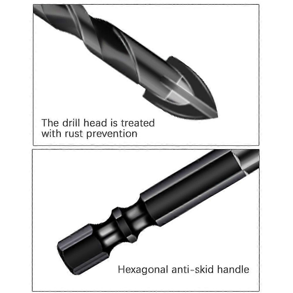 Feature:1. Widely Usage: Can be used for , ceramic tile, mirror, flower pot, wood, porcelain, brick, wall, marble, thin iron plate, etc. Please keep the drill bit vertical and cool it with cooling water. Do not use on hard tiles.2. High Quality: Made of high quality hard alloy. The head is treated with rust prevention to prevent the bit from cracking and prolong its service life.3. Quick Replace: Hexagonal handles are easier and safer to install into all power tools. Compatible with other general purpose electric drills.4. Multiple Sizes: There are a variety of sizes for option, 5/6/8/10/12mm. You can choose the most suitable one according to your need.5. Precision: Precise and unique cross angle design make ground spear tip reduce sliding; Advanced tile cutters go through tile neatly and fast.Specification:Features:Widely Usage: Can be used for , ceramic tile, mirror, flower pot, wood, porcelain, brick, wall, marble, thin iron plate, etc. Please keep the drill bit vertical and cool it with cooling water. Do not use on hard tiles.High Quality: Made of high quality hard alloy. The head is treated with rust prevention to prevent the bit from cracking and prolong its service life.Quick Replace: Hexagonal handles are easier and safer to install into all power tools. Compatible with other general purpose electric drills.Multiple Sizes: There are a variety of sizes for option, 5/6/8/10/12mm. You can choose the most suitable one according to your need.Precision: Precise and unique cross angle design make ground spear tip reduce sliding; Advanced tile cutters go through tile neatly and fast.Specifications:Material: Hard AlloyColor: BlackPackage Size: 16 * 7 * 2cm / 6.3 * 2.8 * 0.8inPackage Weight: 300g / 10.6ozPackage List:4 * 6mm Drill Bit2 * 5mm Drill Bit2 * 8mm Drill Bit1 * 10mm Drill Bit1 * 12mm Drill BitPackage List:4 * 6mm Drill Bit2 * 5mm Drill Bit2 * 8mm Drill Bit1 * 10mm Drill Bit1 * 12mm Drill Bit