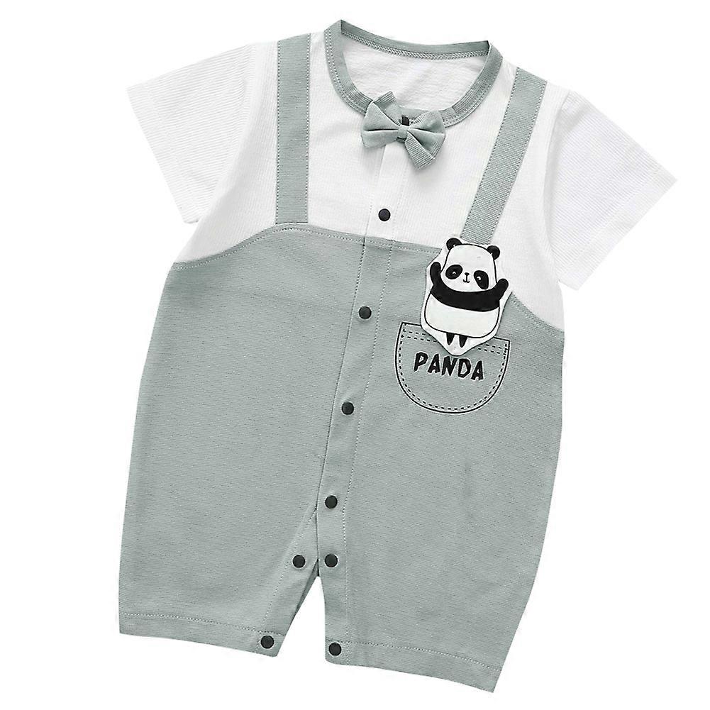 Unisex Baby Infant Bow Tie Panda Pattern Jumpsuit Short Sleeve Summer Jumpsuit (Cyan 66)