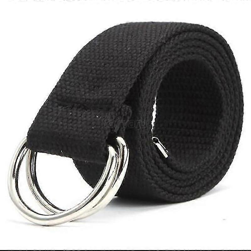 Unisex Canvas Webbing Waist Belt Double D Ring Buckle Jeans Waistband
