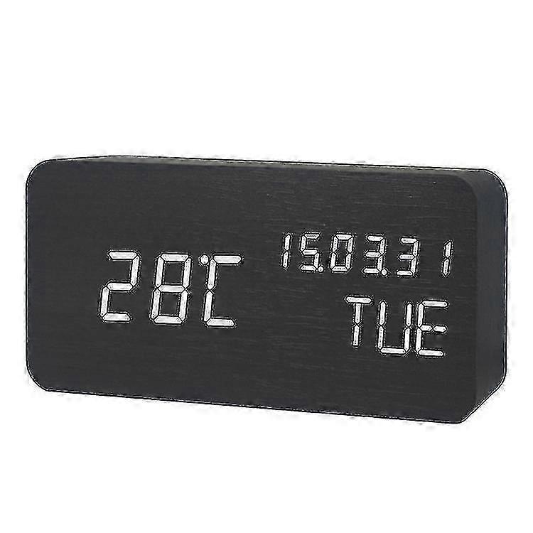 For European Market Mute Digital Wooden Alarm Clock with LED Perpetual Calendar (Black)