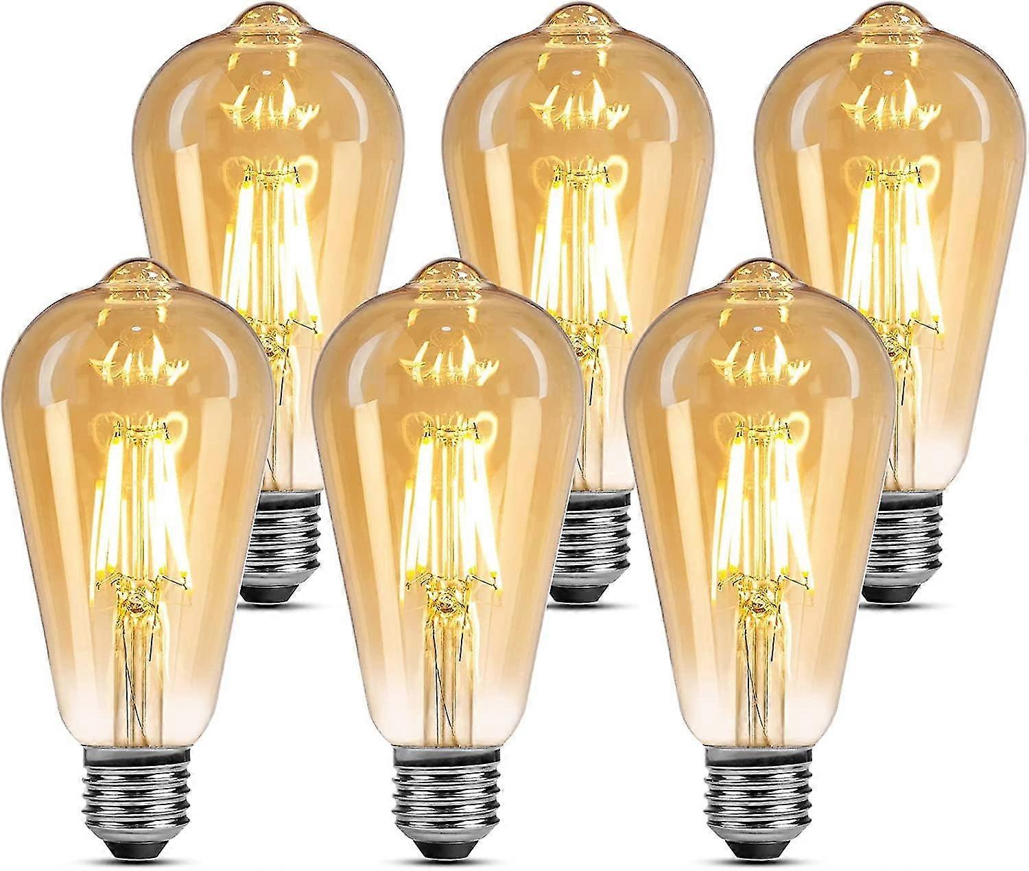 E27 Led Bulb - Warm White 2500k 470lm Bulbs - 4.8w Equivalent To 40w Led E27 St64 Decorative Dimmable - Pack Of 6 [energy Class F]