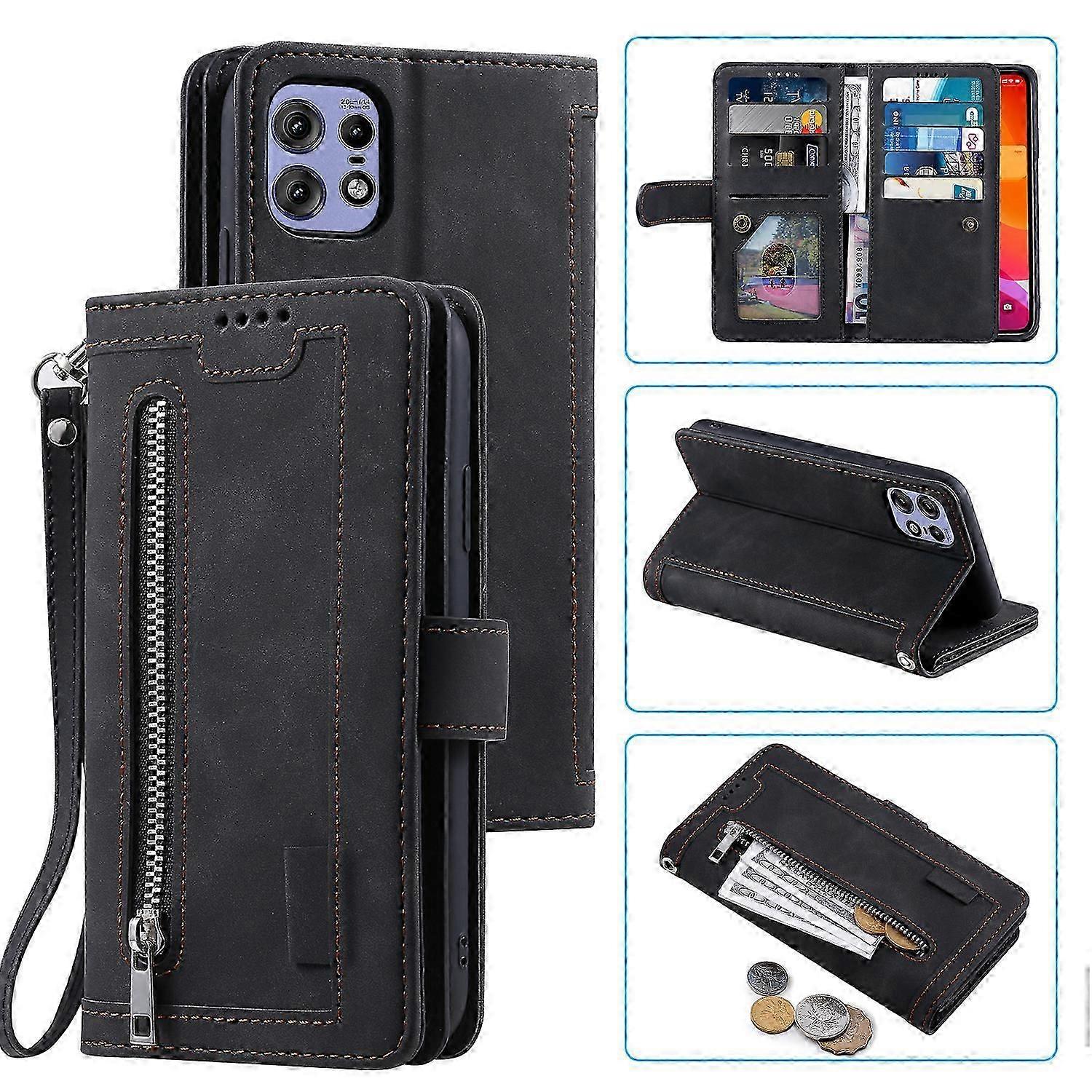 For Motorola Edge 50 Pro 5G Case 9 Card Slots Leather Wallet Phone Cover with Zipper Pocket