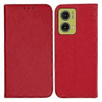 For Motorola Moto G35 5g Case Cross Texture Leather Phone Cover Hidden Magnetic - Red