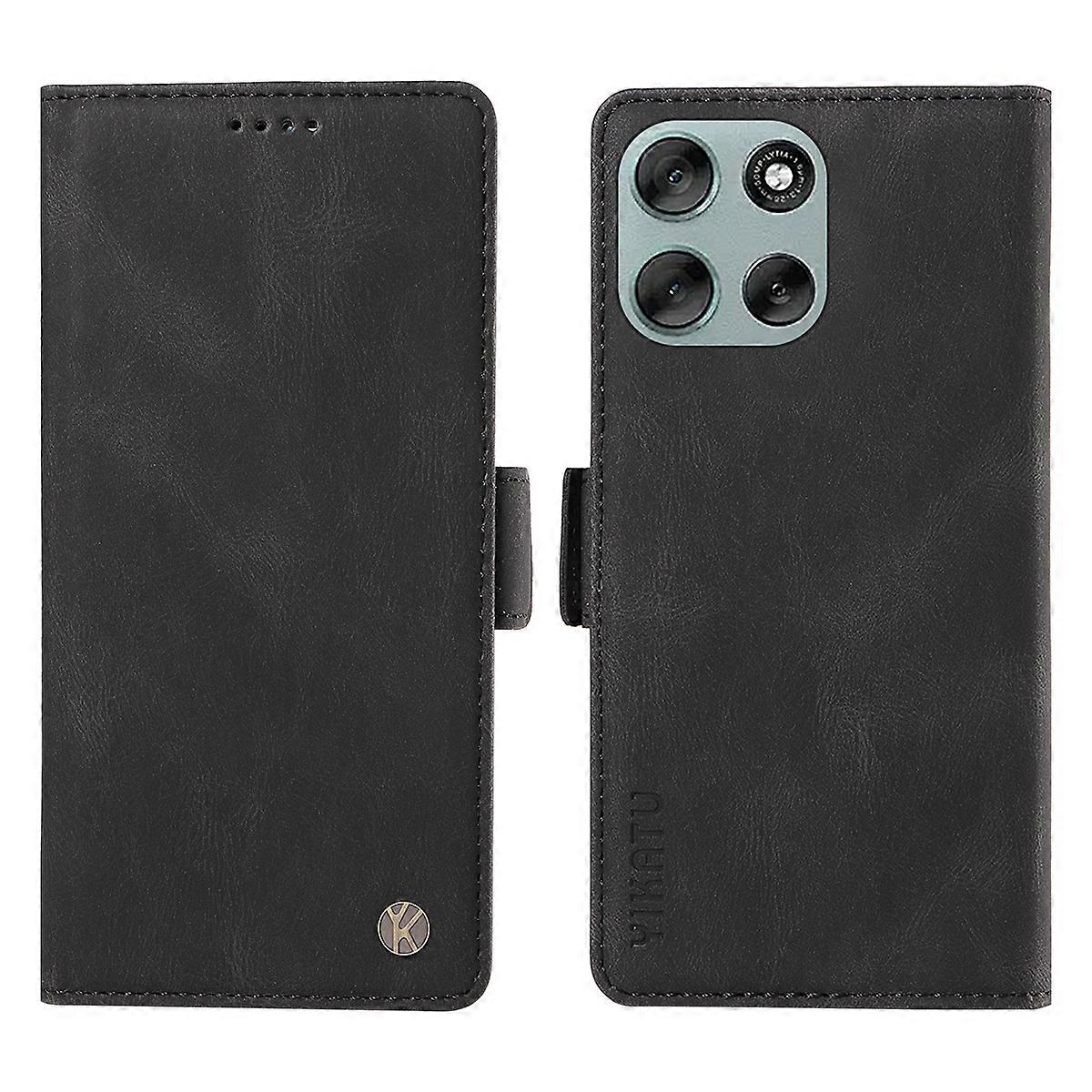 For Motorola Moto G56 5G Leather Case YIKATU YK-005 Skin-touch Feeling Wallet Phone Cover Black