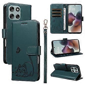 For Motorola Moto G56 5G Case Cat Pattern Imprint Leather Phone Cover with Wrist Strap