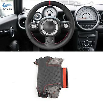 For Mini R56 R57 Hatchback Clubvan Convertible Coupe 3-spoke Hand Stitched Car Steering Wheel Perforated Leather Cover Red Strip
