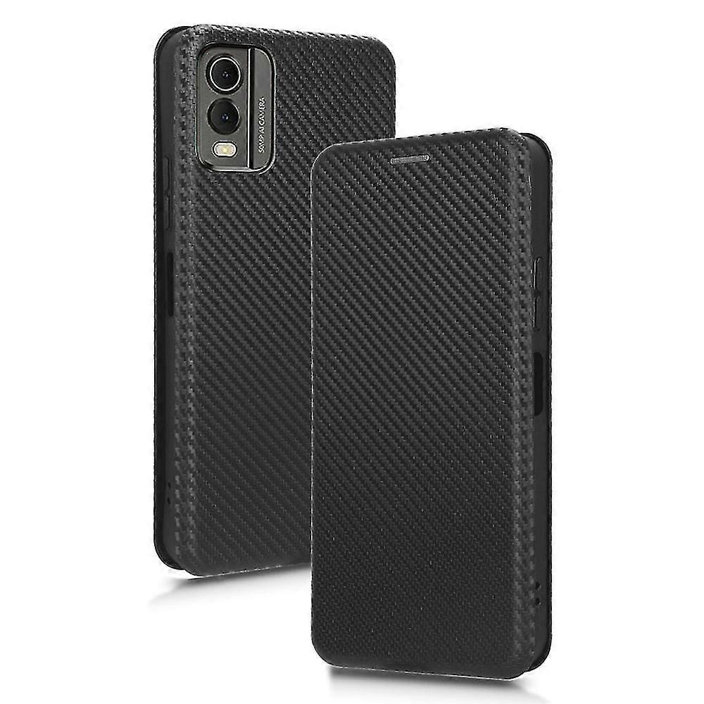 For Nokia C32 PU Leather Carbon Fiber Texture Cover Card Holder Stand Phone Case
