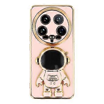 For Xiaomi 14 Ultra Case Electroplating Soft TPU Phone Cover with Astronaut Hidden Kickstand Pink