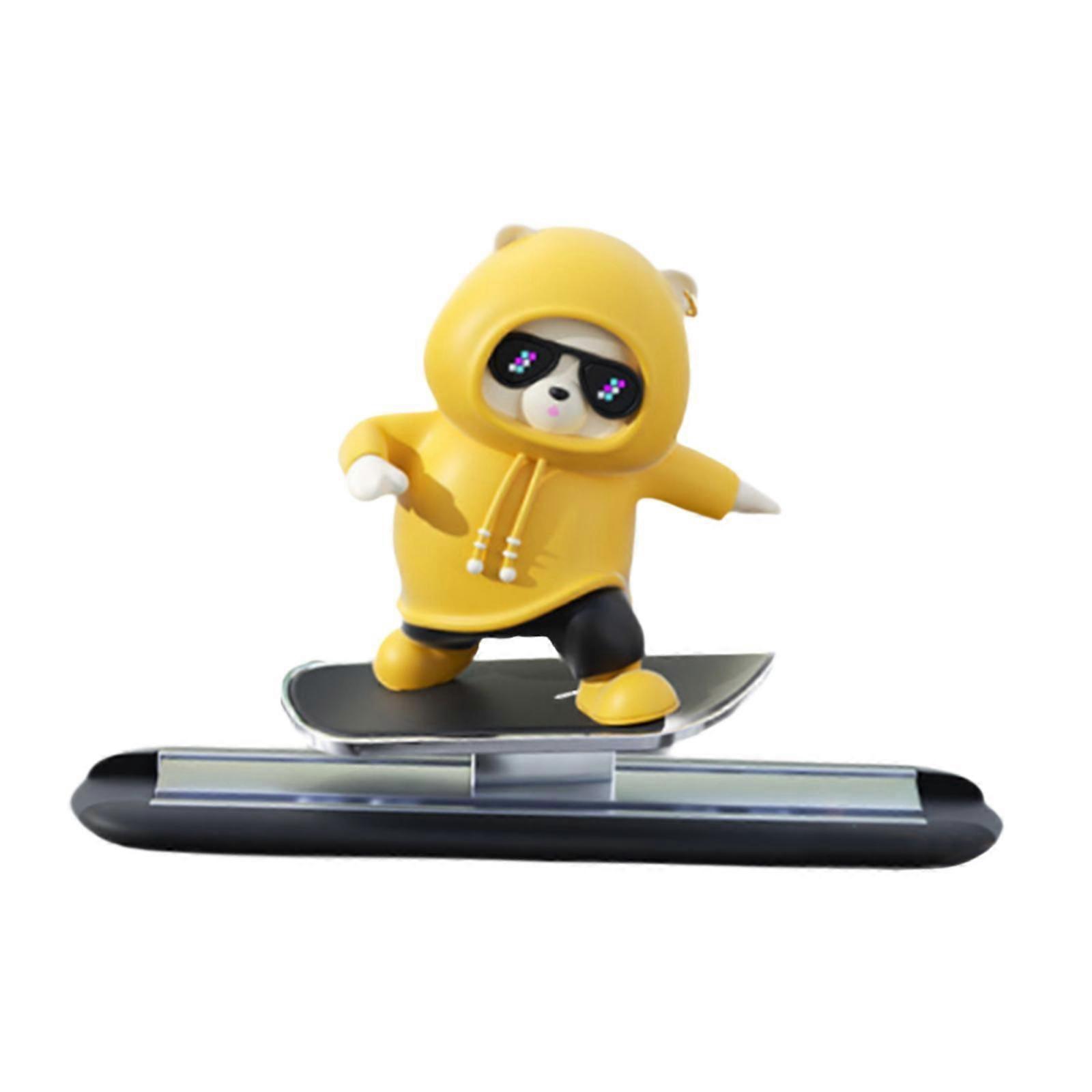 Dashboard Bear Decoration Bear Figure Gift Funny Cute Moving Skateboard Bear Yellow