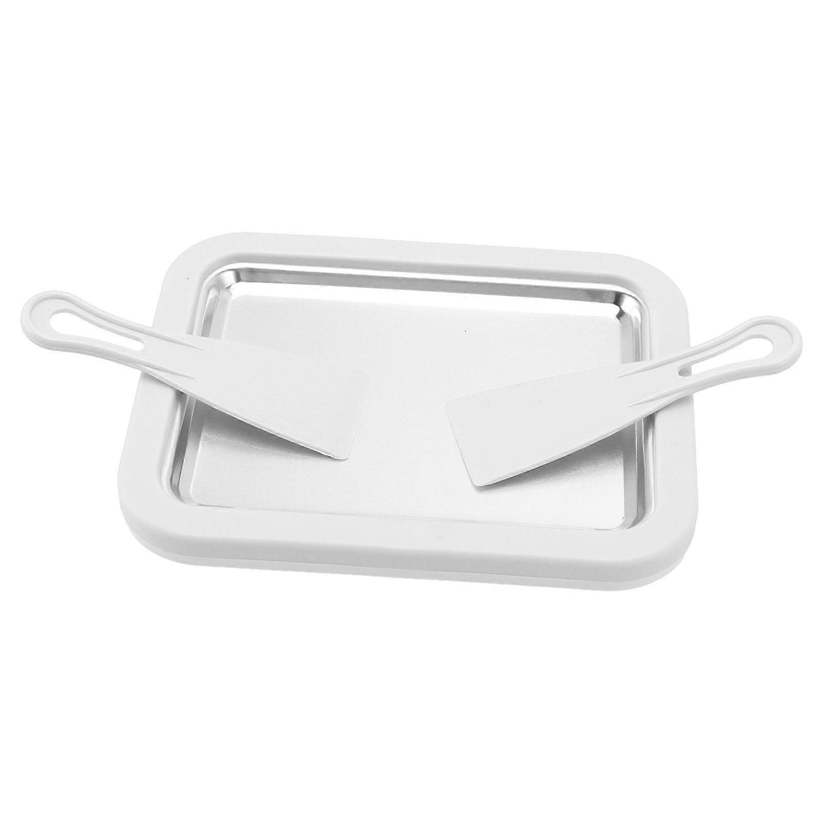 Ice Cream Roller Plate DIY Handcraft Non Plug in Required Large Size Stainless Steel Rolled Ice Cream Maker with Plastic Shovel White