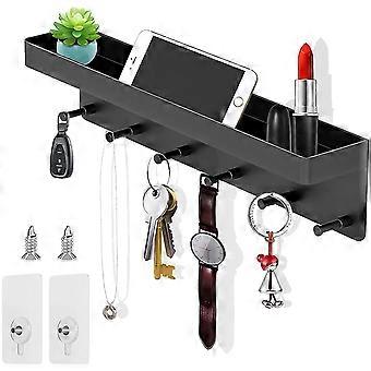 Key Board With Shelf, 6 Hooks & Key Bar, Modern Key Board Black