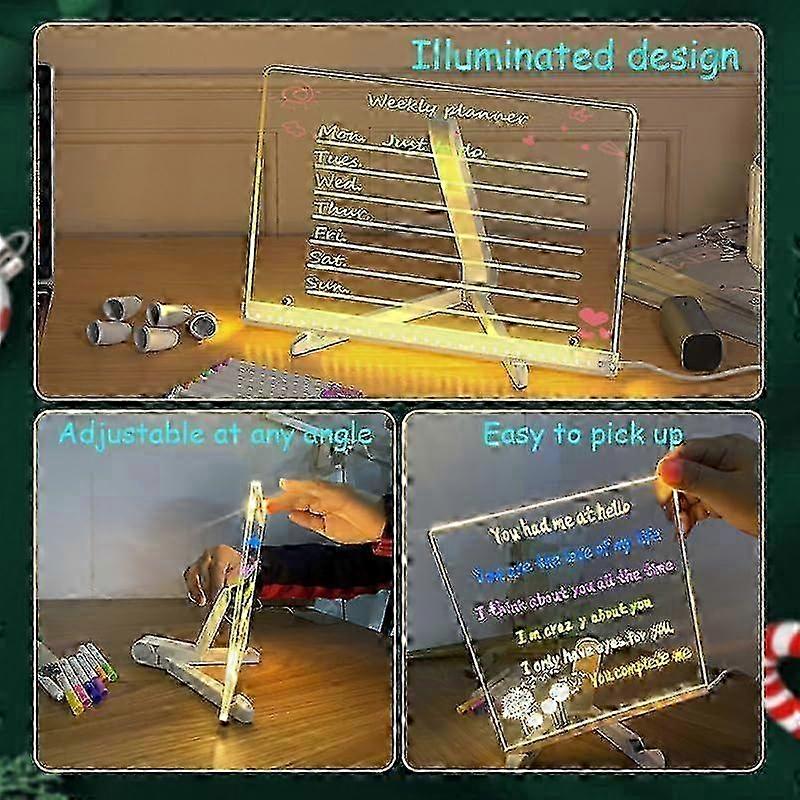 LED Note Board with Colors, Light Up Acrylic Message Board, Led Drawing Board, Illuminated Acrylic Notepad with Adjustable Stand and Pens