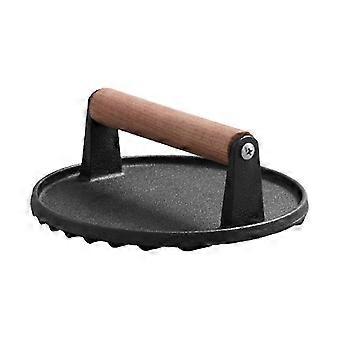 لوح ضغط اللحوم من الحديد الزهر بمقبض خشبي للشواء ، مكبس اللحم المستدير ، مكبس اللحم الدائري ، مكبس فطيرة اللحم (مستدير P20211224122