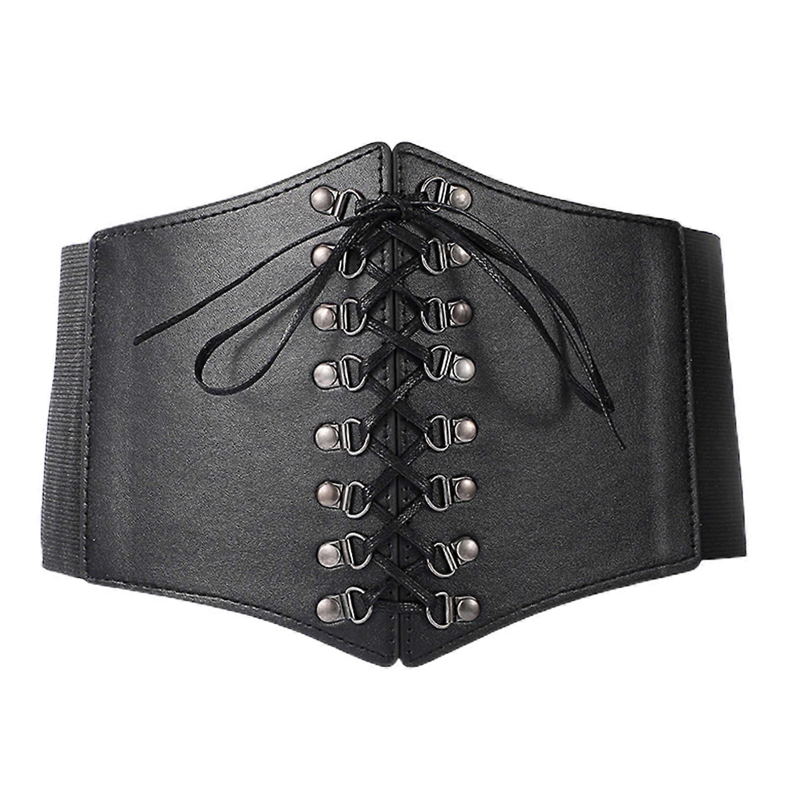 Solid Color Retro Elastic Women Corset Exquisite Fine Craftsmanship Faux Leather Lace-up Buckle Wide Belt Clothes Accessories