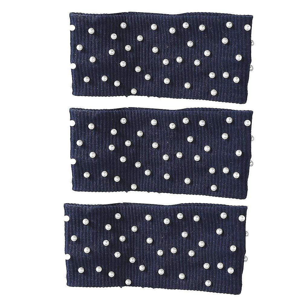 Pearls Elastic Knitted - 3 Pcs Knitted Hairband Ear Warmer Solid Color Corchet Head Wrap Black