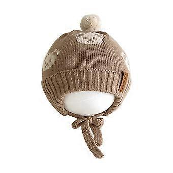 لينة ومريحة الطفل الأذن غطاء قبعة جميل الدب منقوش الطفل الأذن قبعة سميكة ودافئة محبوك قبعة مريحة كاكي