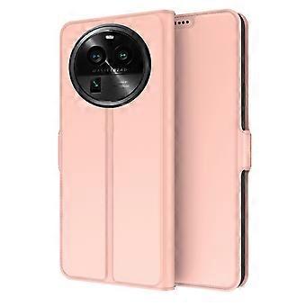 For Oppo Find X6 Shockproof Case PU Leather Card Slot Case Flip Phone Cover with Stand - Rose Gold