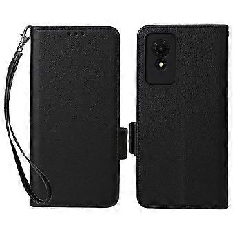 ل TCL 501 T433D الجلود حالة محفظة حامل الليتشي نسيج غطاء الهاتف بالجملة - أسود