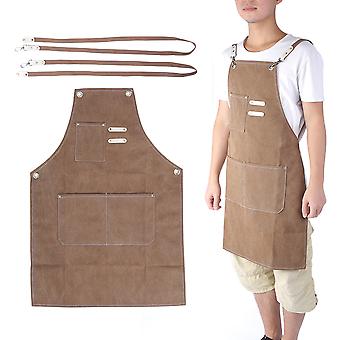 Waterproof Thick Canvas Apron Working Clothes for Kitchen Milk Tea Shop Restaurant Light Tan