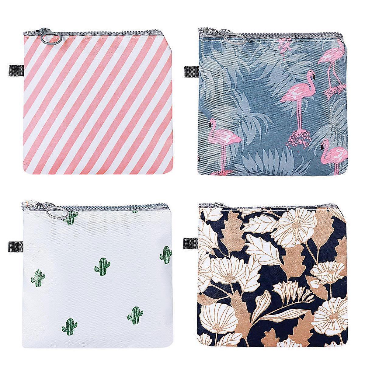 Waterproof Sanitary Napkin Holder Pouch Zipper Design For Girls And Women Assorted Color Travel 4Pcs