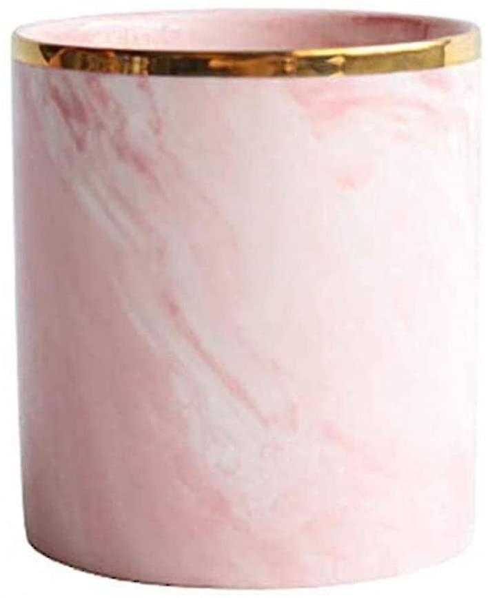 Makeup Brush Holder Ceramic Marble Storage Bucket Pencil Card Organizer Box Pink