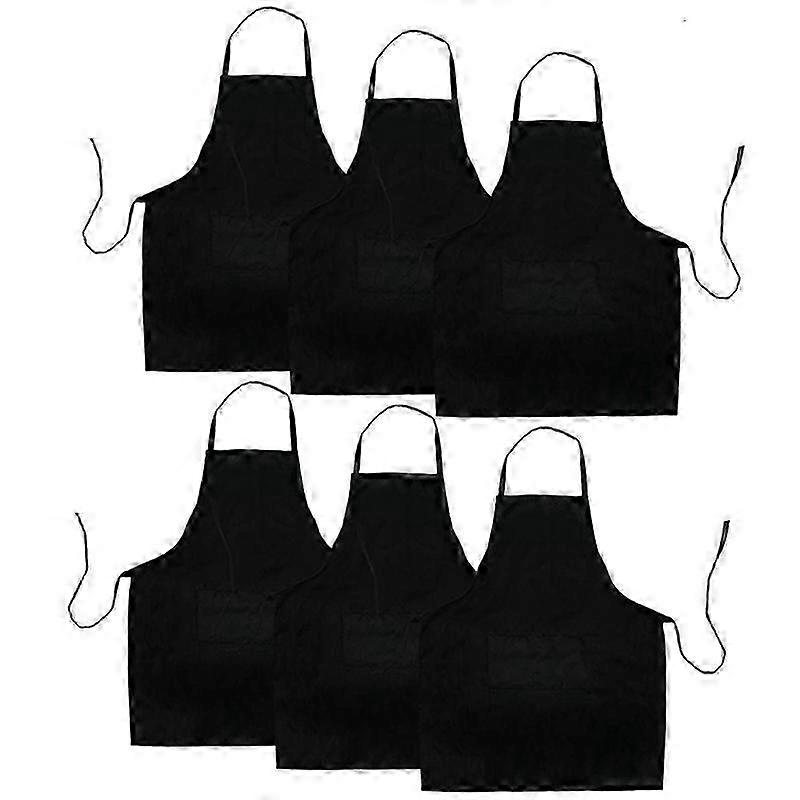 6-Piece Black Kitchen aprons with Pockets Anti-Soiling Ideal for Barbecue and Cooking