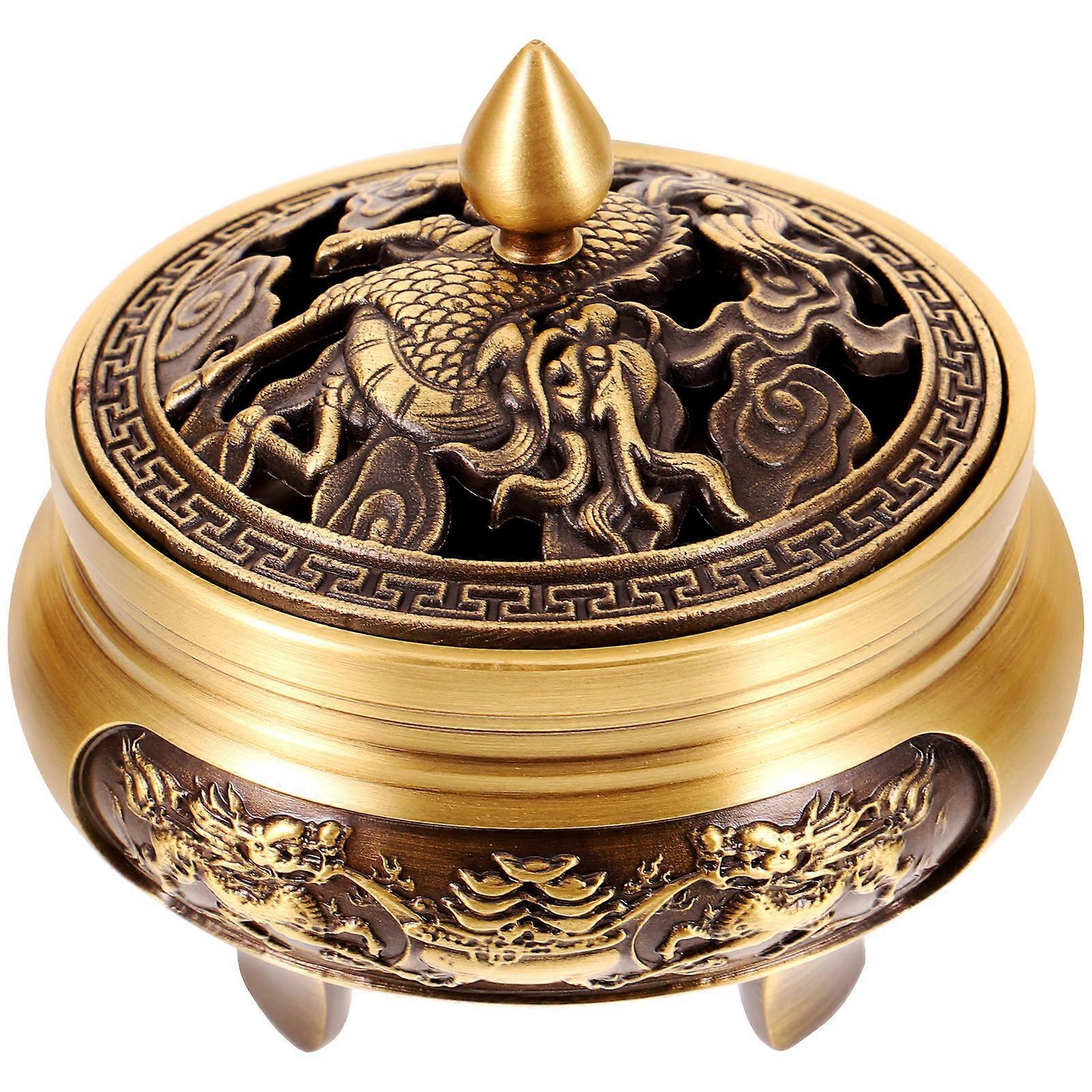 Decorative Censer Brass Incense Burner Aroma Burning Meditation Aid Home Decoration Golden 8.5X8.5X8.5cm 1Pcs
