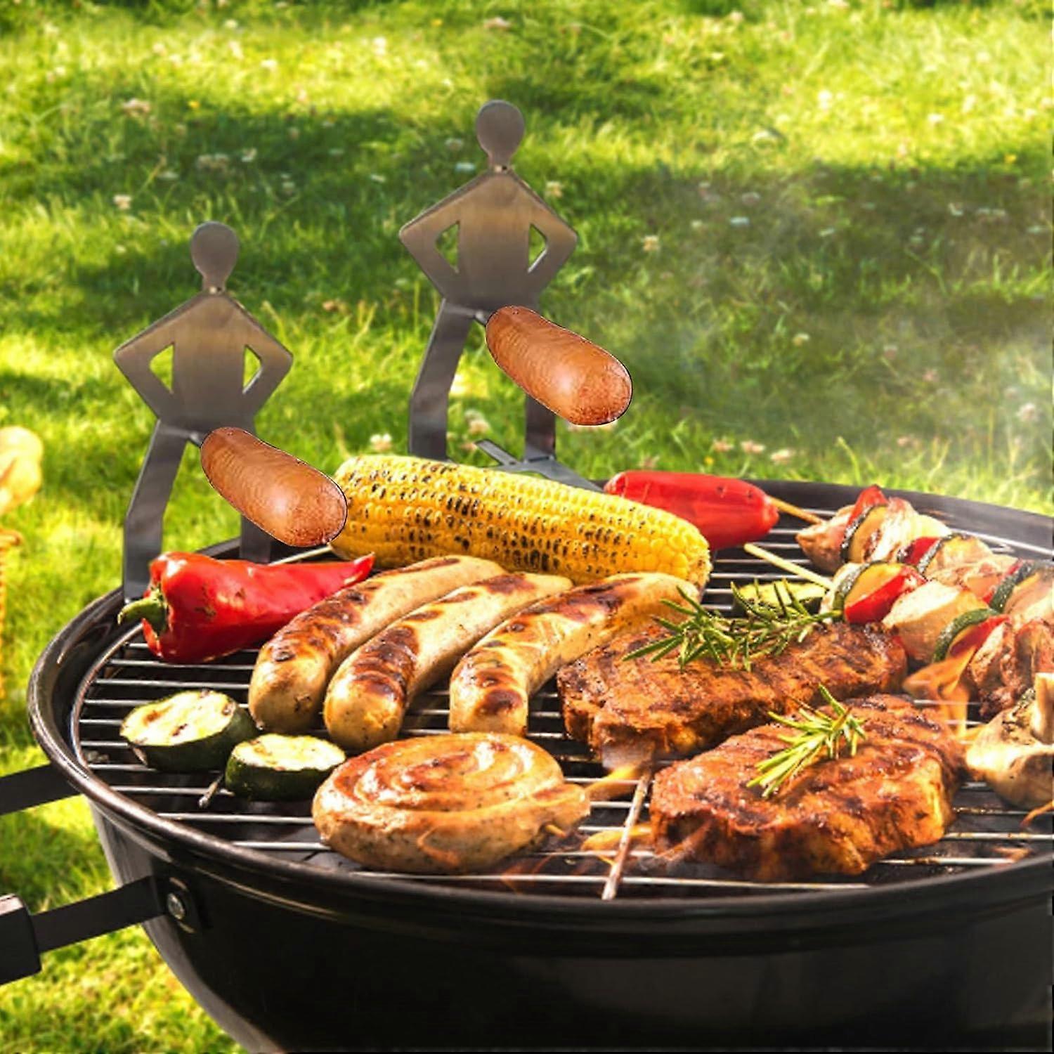 Fun hot dog sausage holder, creative portable grill stainless steel grill holder grill tool for kitchen hot dog grilling sticks -GSL