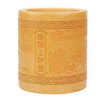 Multifunction Bamboo Pen Pencil Holder Desk Stationery Organizer Round Container (Style B)