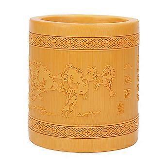 Multifunction Bamboo Pen Pencil Holder Desk Stationery Organizer Round Container (Style C)