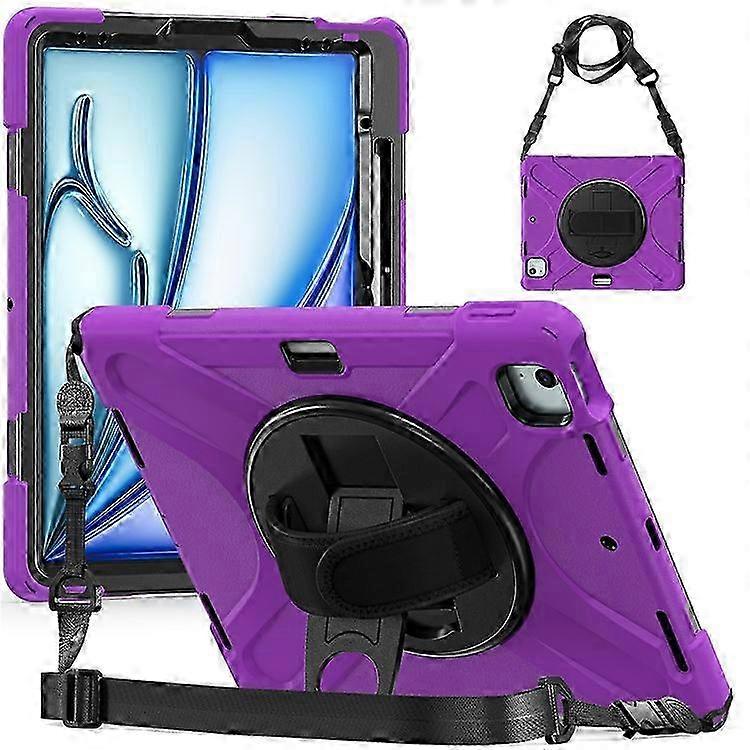 Compatible For iPad Air 11 (2024) Case with Shoulder Strap TPU+PC+Silicone Kickstand Tablet Cover