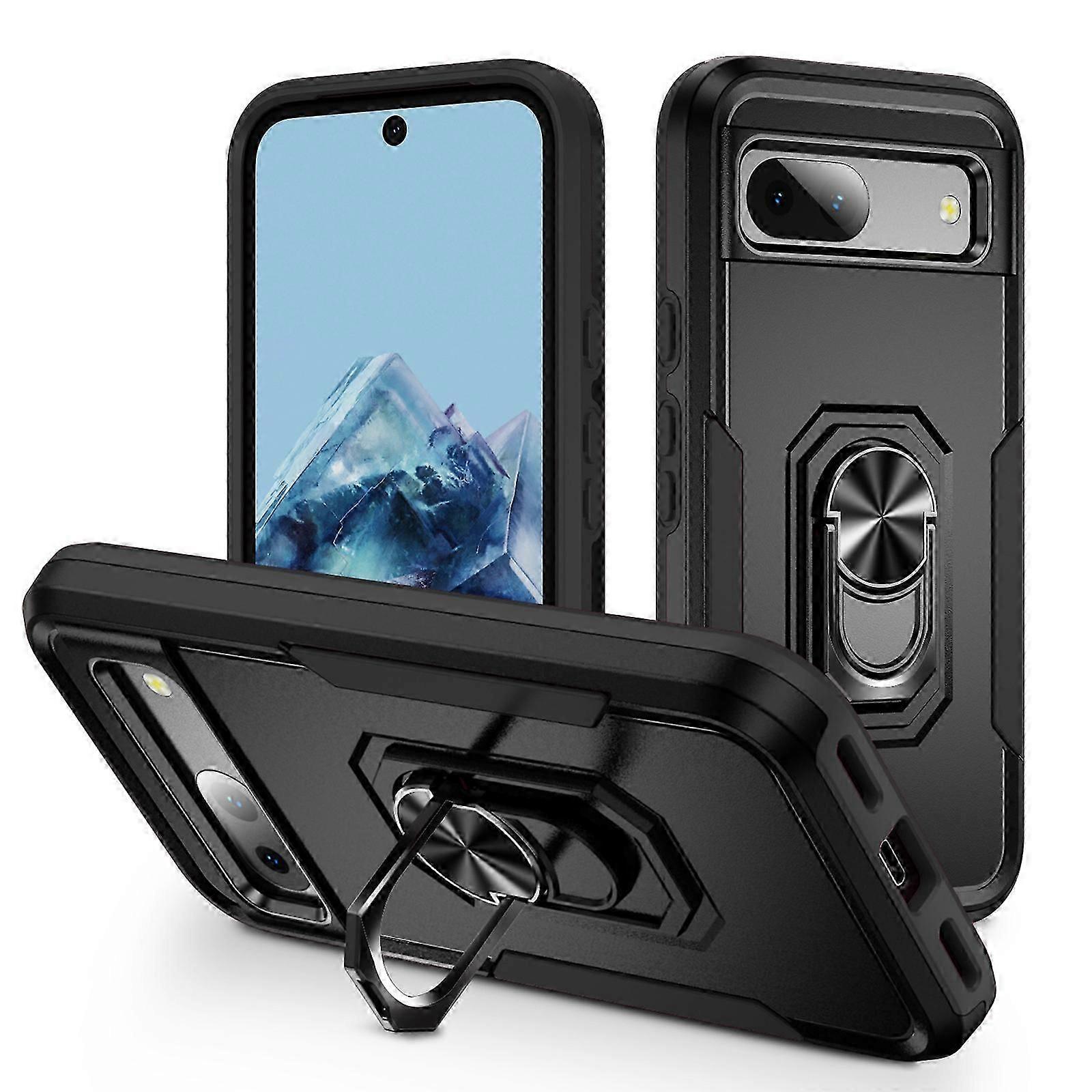 Compatible with Google Pixel 8A Case, Military-Grade Drop Protection Shockproof Phone Cover with Car Mount Ring Stand Kickstand Protective Phone Case
