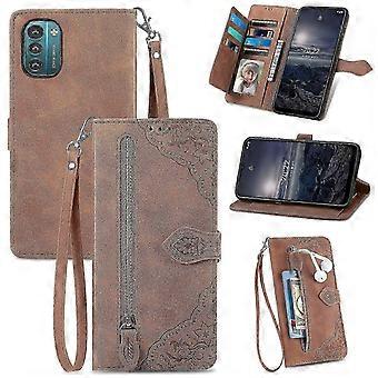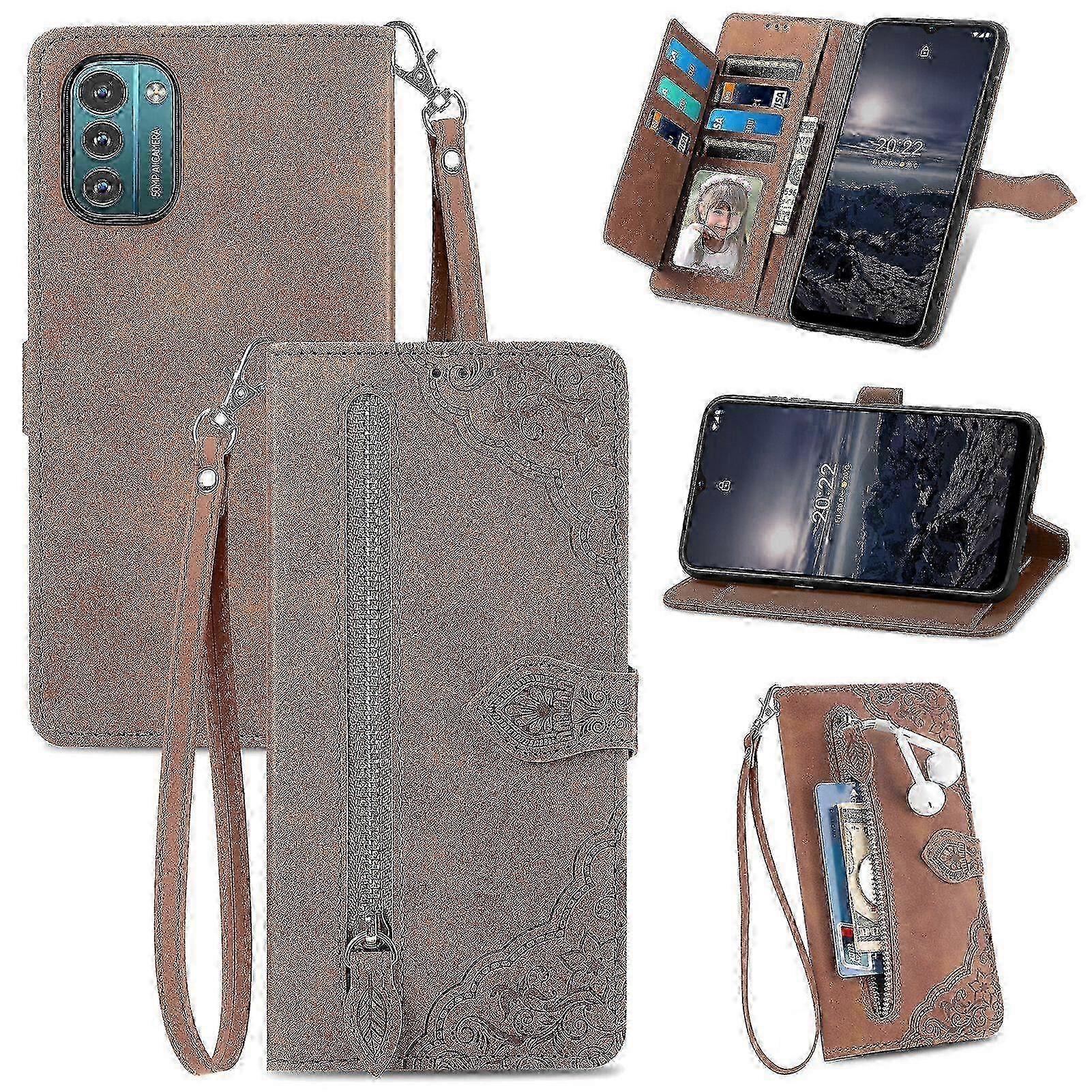 Compatible with Nokia G21/ G11 Wallet Case with Strap Card Holder PU Leather Handbag Zipper Purse Cover