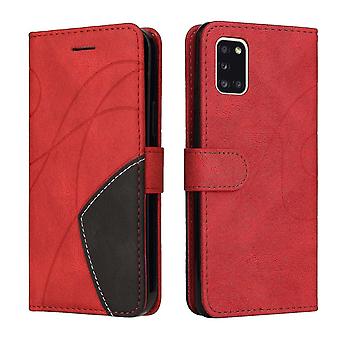 متوافق مع سامسونج جالاكسي A31 غطاء حماية لبطاقة الحماية بو وغطاء حماية من الجلد Cuir Wallet قابل للطي - أحمر