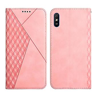 متوافق مع شاومي ريدمي 9a غطاء حماية بريميوم جلد مغناطيسي فوليو إتوي كوكي - وردي