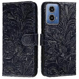Compatible For Motorola Moto G34 5G Case Lace Flowers PU Leather Flip Wallet Phone Cover