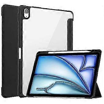 Compatible For iPad Air 11 (2024) Clear Case PU Leather Auto Wake Sleep Protective Cover with Pen Slot