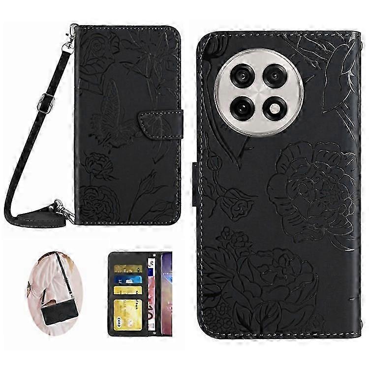 Compatible For OnePlus 13R 5G Case Butterfly Flower Imprint Leather Phone Cover with Shoulder Strap