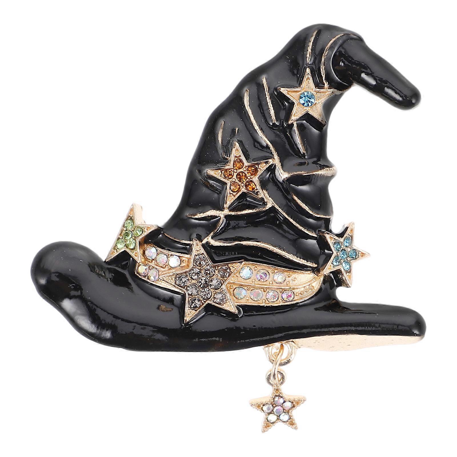 Glowing Rhinestone Witch Hat Brooch Durable Alloy Halloween Pin for Costumes, Backpacks & Accessories Unisex Design Halloween Jewelry
