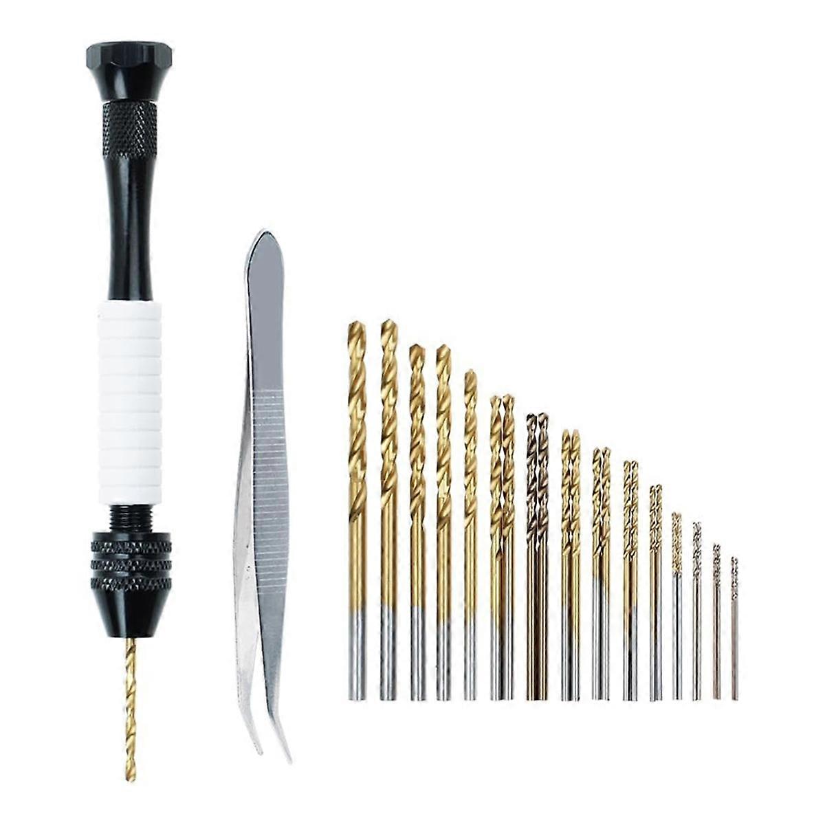 Pin Vise Hand Drill Manual Drills W/25pcs Drill Bits (0.5mm-3mm) -Rotary Hobby Drill for Jewelry Mak