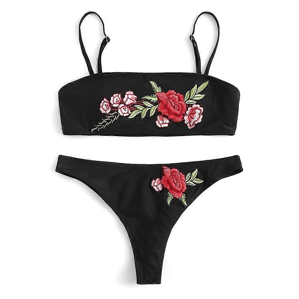 Sexy Women Summer Embroidery Swimsuit Bikini Swimwear Ladies Sleeveless (Black S)